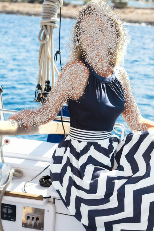 پیراهن زنانه بلند سفید سرمه ای برند کاپشی کد۱۰۷۴