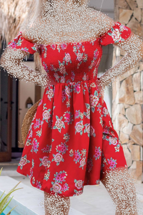 پیراهن زنانه دکلته گلدار کد:۱۲۶۳