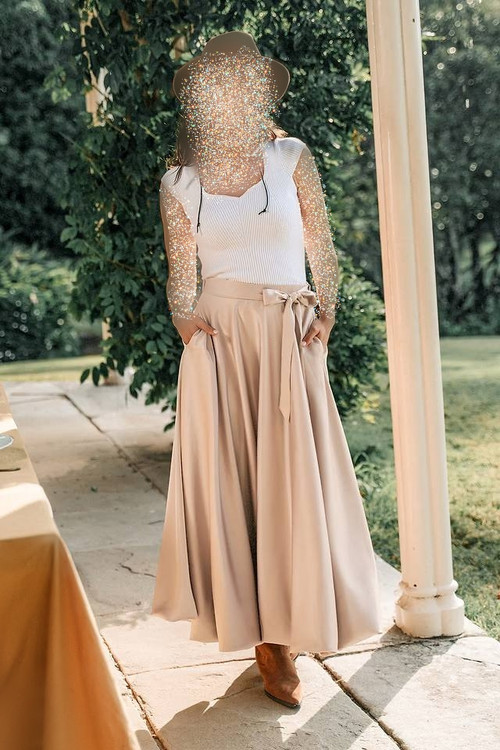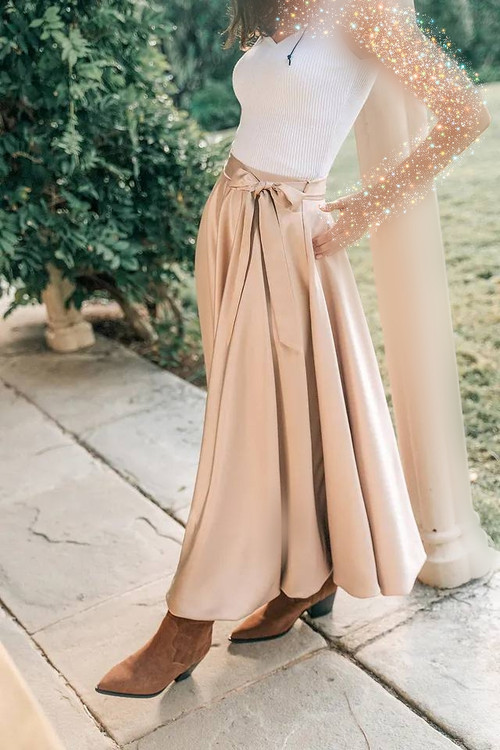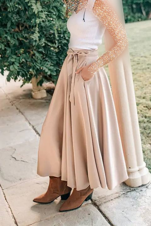 ✅️دامن مجلسی ساتن کمردار؛ گرم بالا